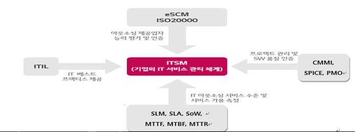 | 키워드(암기) | ITIL, ITIL V3, eSCM(ISO 20000), CMMI, SPICE, SoW |