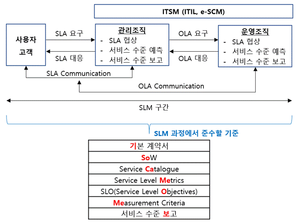 - 서비스 수준에 대한 의사소통 체계 - 보고 형식 및 방법 규정 - 서비스 모니터링, 개선방안 수립/전개 등 |