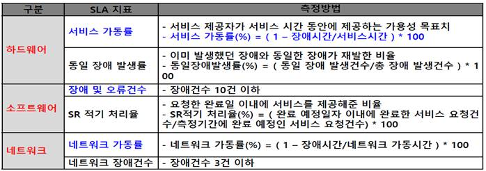 III. 하드웨어, 소프트웨어 및 네트워크 운영, 유지보수를 위한 SLA 지표와 측정방법