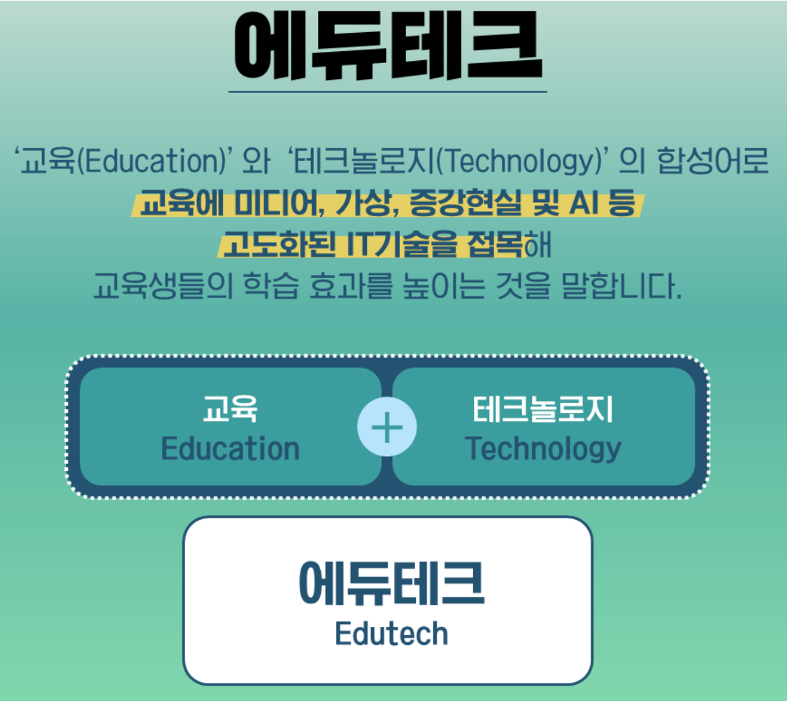 | 리드문 | 교육(Education)과 기술(Technology)의 합성어로 교육과 정보통신 기술을 결합한 산업 |