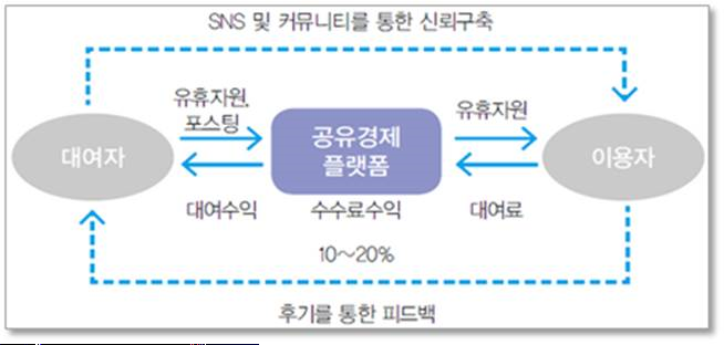 - 공유경제로 인하여 다양한 플랫폼이 구축되고 수익모델 발전