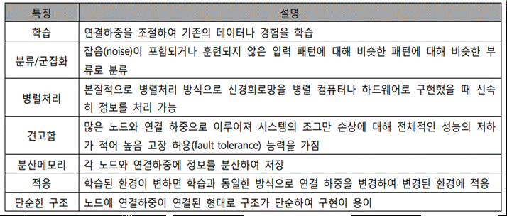 - 인공신경망은 시냅스의 결합으로 네트워크를 형성한 인공 뉴런(노드)이 학습을 통해 시냅스의 결합 세기를 변화시켜, 문제 해결