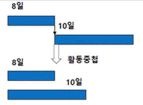 작업 병행 추진 | 일정계획 상의 활동간의 의존성을 조정해서 순서상의 활동을 중첩 진행하여 일정을 단축하는 기법 |