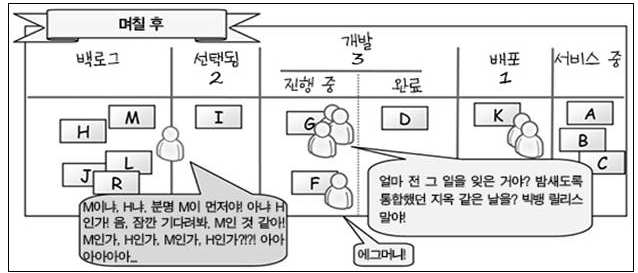 | Kanban Board | 프로세스를 기재한 Board와 스토리카드를 이용해 업무흐름제어 |