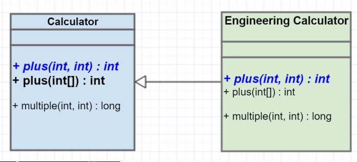 | 개념 | 메소드의 이름은 같으나 인자의 타입 및 개수가 다른 경우, 동일 클래스의 동일 메소드로 매개변수 다르게 하여 정의하는 기법 | 상속관계에 있는 두 클래스 중 하위클래스에서 상위클래스의 메소드를 재정의하여 사용하는 기법 |