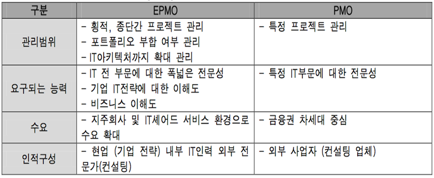 - EPMO와 PMO의 비교