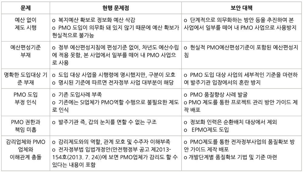 - 도입된 PMO 제도의 한계점 및 보완 방안