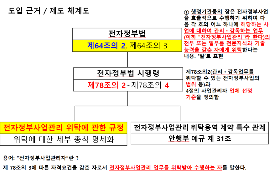 - 전자정부사업관리 위탁(PMO) 제도 도입(전자 정부법 제64조의2)