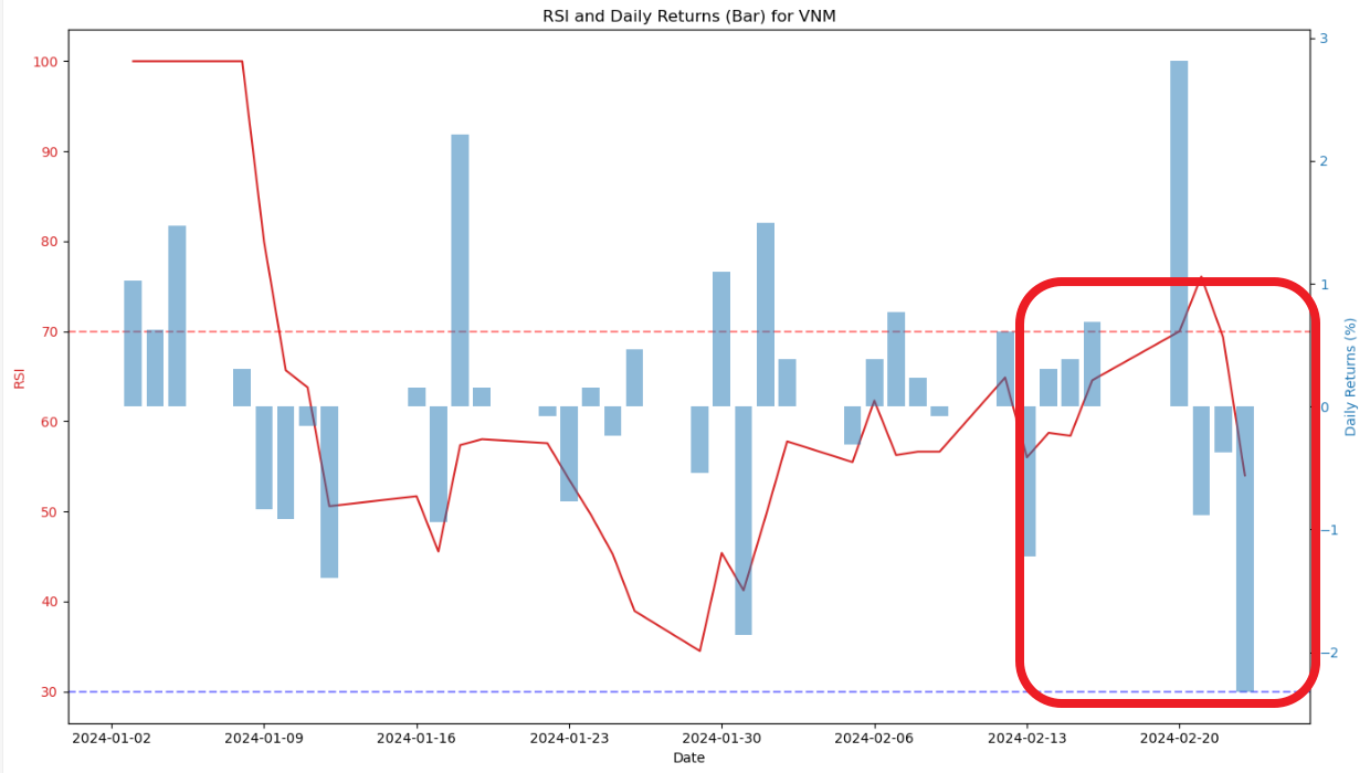 - 단기적으로 봤을때 RSI기준으로 과매수상태를 지나서 다시 하락을 보이고 있는상황