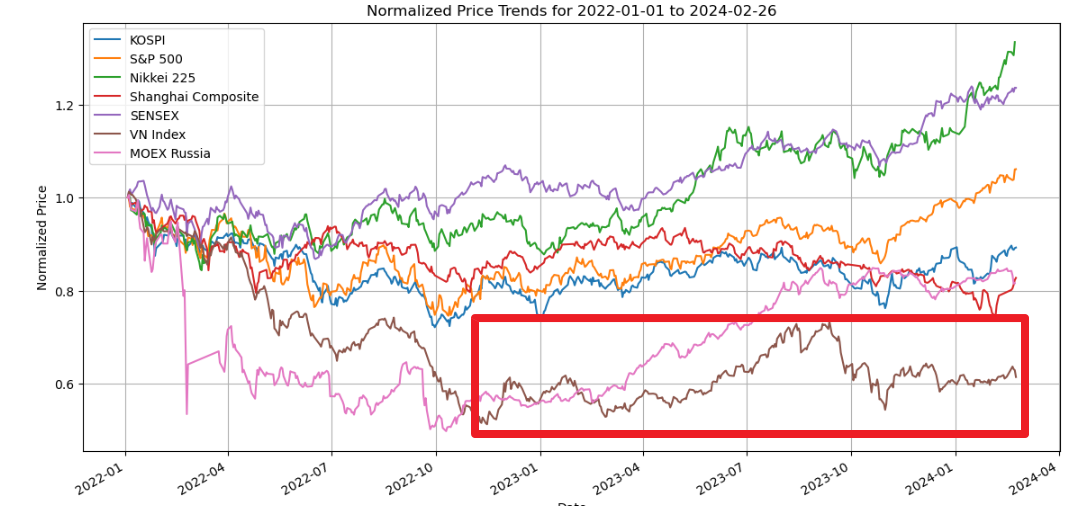 - S&P500과 Nikkei 225는 이미 회복후에 신고가를 이어가고 있는상황이나, 베트남은 정말 눈물이 나는 상황