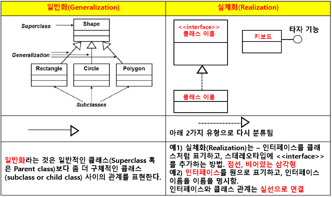 | 키워드(암기) | 연관관계, 의존관계, 일반화(Generalization), 실체화(Realization) |