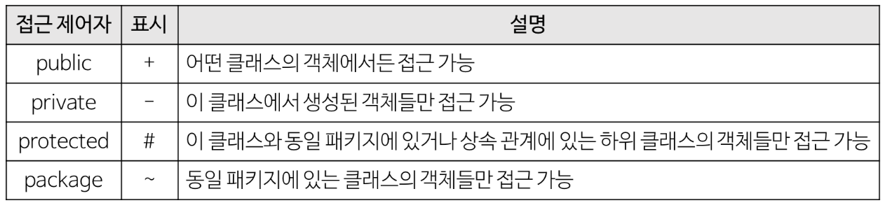 | 키워드(암기) | 클래스, 속성(Attribute), 연산(Operation), 연관, 집합연관, 복합연관, 의존, 상속, 구현 |