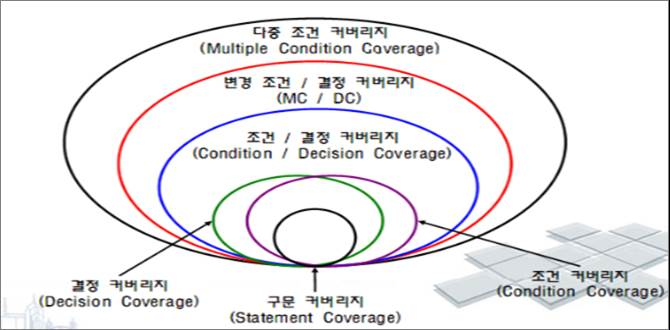 - 구문, 결정, 조건, 조건/결정, 변경 조건/결정, 다중 조건 커버리지 관계도 설명