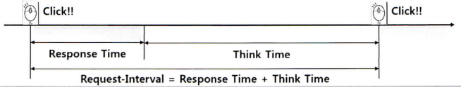 | Request Interval Time | - 사용자가 한번 클릭하고 다음 클릭할 때 까지 걸리는 시간 = Response Time + Think Time |