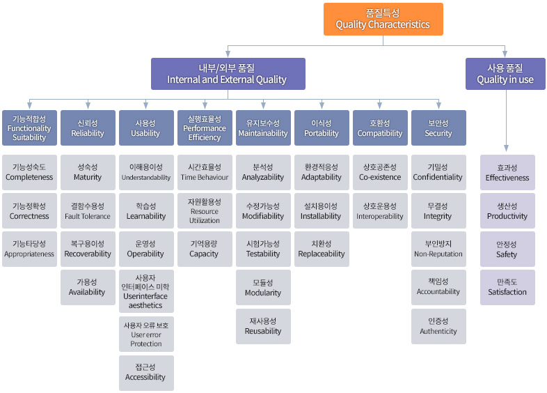 | 사용품질 | [효과성, 생산성, 안정성, 만족도] | |