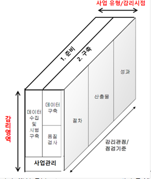- 개념모델에 근거하여 사업유형/감리시점, 감리영역, 감리관점/점검기준의 세축으로 구성