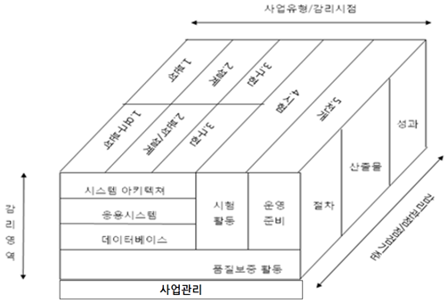 | 절차 (Process) | 사업에 대한 각종 관리활동 및 구축/운영 계획 및 절차의 수립과 준수 여부의 적정성을 검토 |