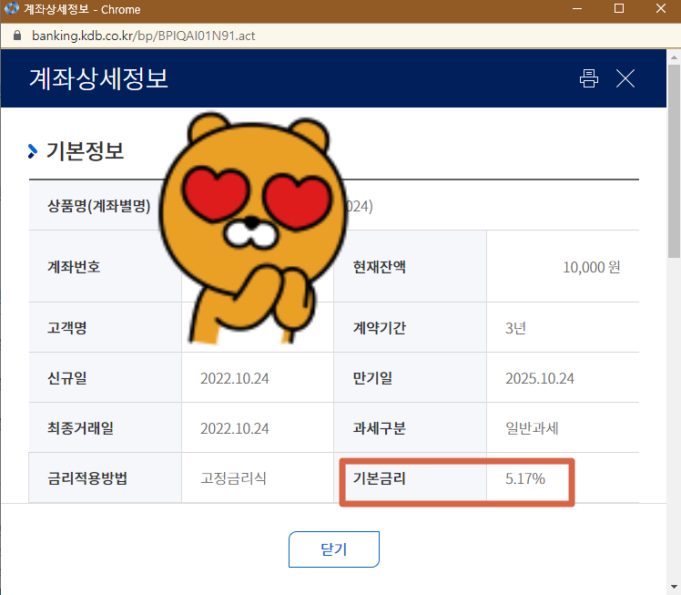 - 금리를 보면 그냥 3년치 가입시 5.17%이며, 0.1%는 자동이체를 걸면 우대금리를 받을 수 있습니다