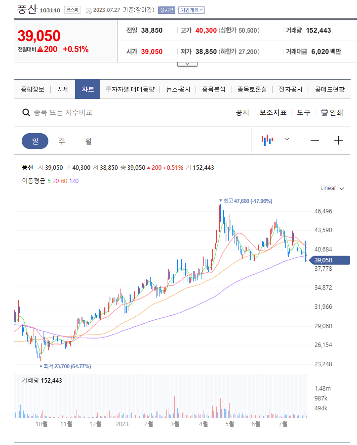 첫번째 선정 주식은 풍산이다.