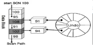 | 원리 | 데이터를 변경 할 때마다 그 변경사항을 Undo 영역에 저장해 둠. 시작시점의 일관성 있는 버전(CR Copy)을 생성 데이터를 읽다가 쿼리(또는 트랜잭션) 시작 시점 이후에 변경된(변경이 진행 중이거나 이미 커밋된) 값을 발견하면, Undo영역에 저장된 정보를 이용해 쿼리(또는 트랜잭션) 시작 시점의 일관성 있는 버전(CR Copy)을 생성하고 그것을 읽음. |