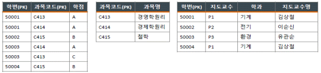 ![]() ![]() >>>>>>이상현상 발생 : 삽입, 삭제, 갱신 이상 |