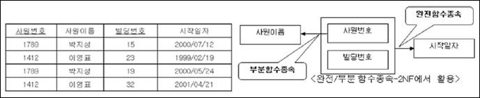 - 1차 정규화된 스키마에서 부분함수 종속성 제거해 모든 일반속성이 기본키에 완전 종속되도록 구성하는 데이터 구조화 기법