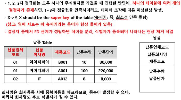| 키워드(암기) | 결정자 함수 종속성 제거, 이상현상방지 |