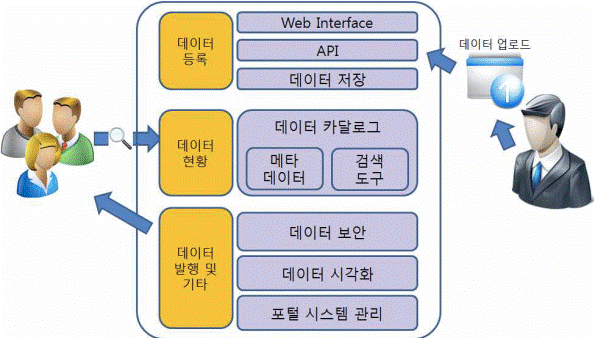 - 데이터 개방을 위해 데이터 업로드, 데이터 저장 등의 역할을 수행 - 데이터 등록을 위해 지원가능 한 파일 형식을 정의하고, 데이터의 API 추출 등의 기능 제공 |