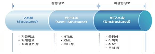 | 공공데이터 | <공공데이터의 제공 및 이용 활성화에 관한 법률> 공공기관이 생성 또는 취득하여 관리하고 있는 광(光) 또는 전자적 방식으로 처리되어 부호·문자·도형·색채·음성·음향·이미지 및 영상 등(이들의 복합체 포함)으로 표현된 모든 종류의 자료 또는 정보 |