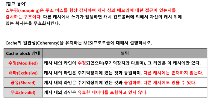 | 3 | 11. 캐시일관성(Cache coherence) 문제해결 방법에 대해서 설명하시오. | 합숙_2016.01_관리 |