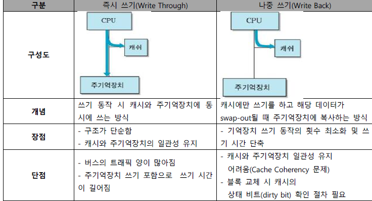 | 키워드(암기) | 즉시쓰기, 나중쓰기, sw방식, HW방식 |