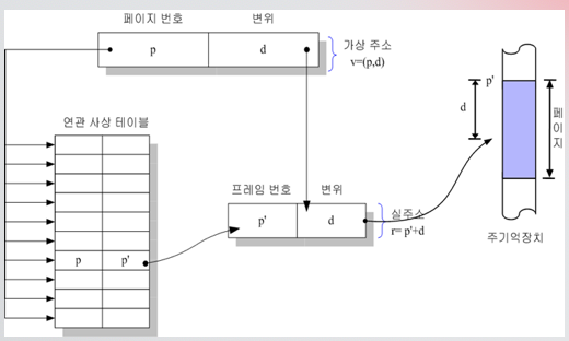 - 변환되는 가상 주소와 페이지 사상 테이블의 시작 주소는 제어장치 내의 고속 레지스터에 보관
