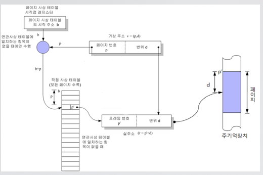 - 페이지 사상 테이블의 참조는 한 기억장치 주기 시간(cycle time)내에서 수행됨