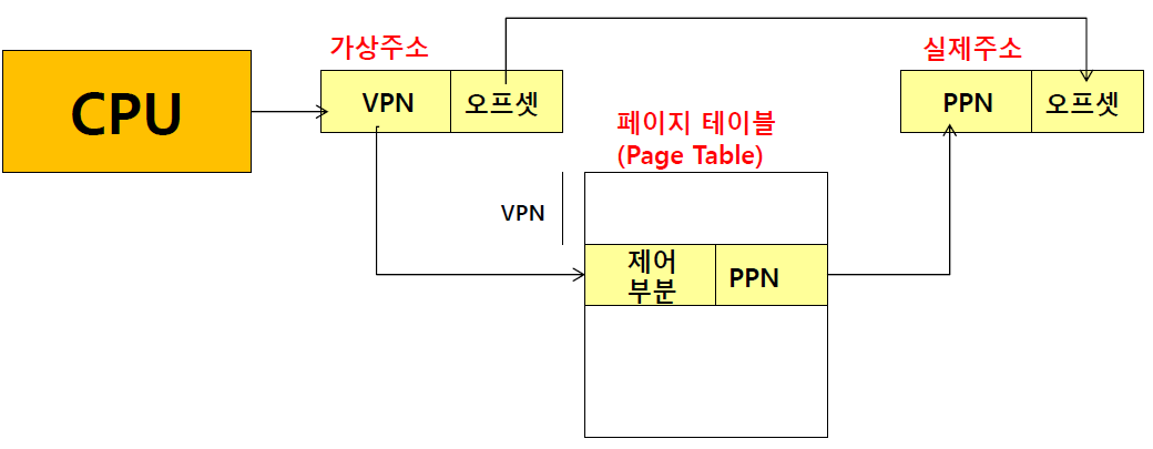 - 가상메모리의 주소 변환 기법