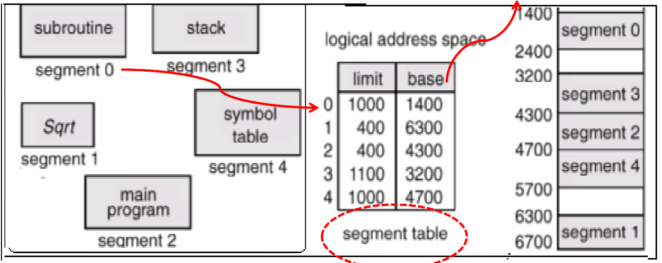 | Segmentation | - 가상기억장치를 서로 크기가 다른 논리적 단위인 세그먼트로 분할 및 할당 - 메모리에 적재될 때 빈 공간을 찾아 할당하는 사용자 관점의 기법 - 블록의 크기가 가변적으로서 외부 단편화에 빈번하게 발생할 가능성이 존재 |