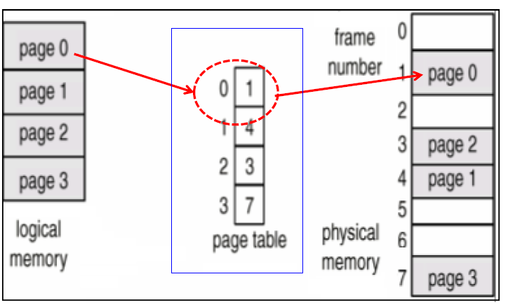 | 매핑 테이블 | 매핑 테이블(페이지번호, 프레임번호) 유지 |