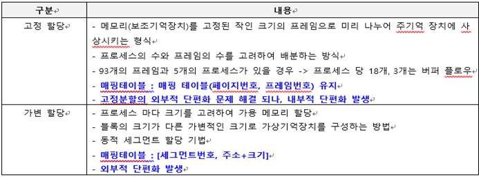 고정(정적)할당기법 가변(동적)할당기법 |