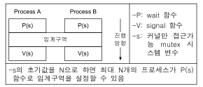 | 원자적 실행 | P연산과 V연산은 하나의 과정으로 수행 |
