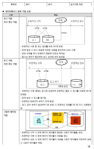 | 검사점 | 주기적 생성 | 변경 내용에 대해 일정 기간 단위로 체크 포인트 생성 |