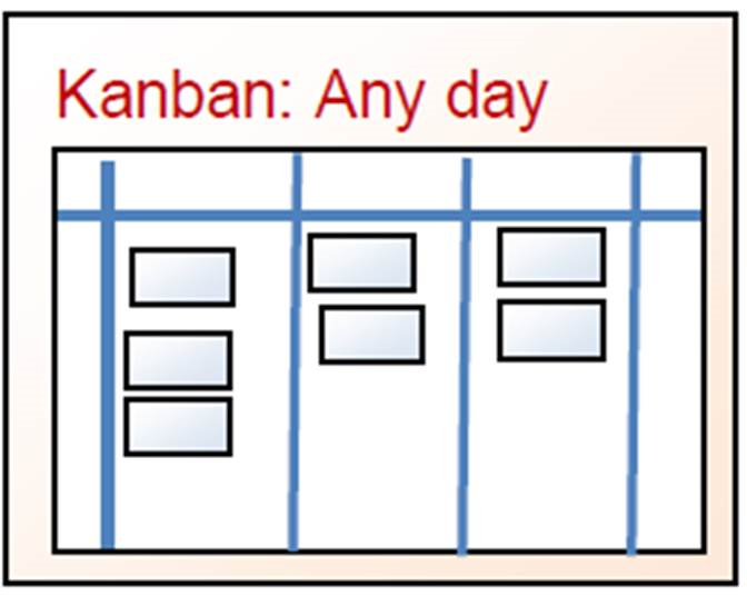 - 칸반보드를 통해 개발공정을 시각화 하고 WIP 제한을 이용해 workflow 상의 공정을 관리하고 최적화하여 적시개발(just in time Development) 를 지원하는 Agile 방법론