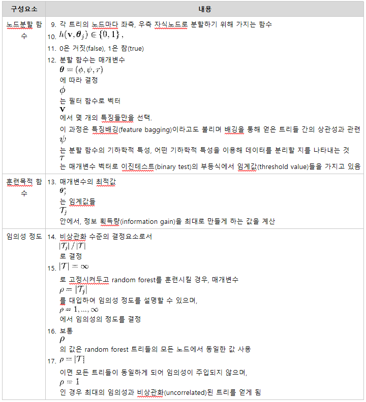 - 분석에 사용되는 변수를 랜덤하게 추출하는 것으로써, 훈련단계에서 훈련목적함수를 최대로 만드는 노드분할 함수의 매개변수 θ의 최적값을 구하는 과정